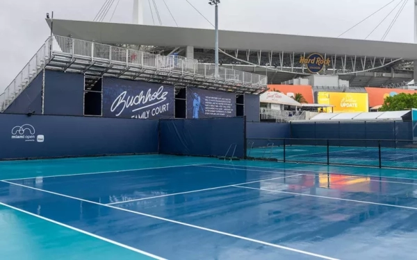 Финал одиночного «Мастерса» в Майами отложен из-за дождя как минимум на час — матч начнётся не ранее 23:30 по московскому времени.